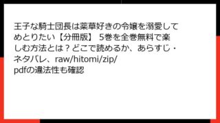 王子な騎士団長は薬草好きの令嬢を溺愛してめとりたい【分冊版】 6巻:甘い溺愛が加速する中編の魅力に迫る こんにちは、マンガ好きの皆さん! 今日は、乙女心をくすぐるラブストーリーの傑作、『王子な騎士団長は薬草好きの令嬢を溺愛してめとりたい【分...