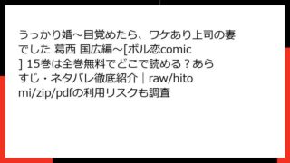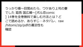 うっかり婚~目覚めたら、ワケあり上司の妻でした 葛西 国広編~[ボル恋comic] うっかり婚~目覚めたら、ワケあり上司の妻でした 葛西 国広編~[ボル恋comic] 14巻を全巻無料で楽しむ方法とは?どこで読めるか、あらすじ・ネタバレ、raw/hitomi/zip/pdfの違法性も確認