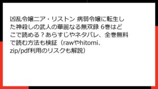 凶乱令嬢ニア・リストン 病弱令嬢に転生した神殺しの武人の華麗なる無双録 凶乱令嬢ニア・リストン 病弱令嬢に転生した神殺しの武人の華麗なる無双録 6巻はどこで読める?あらすじやネタバレ、全巻無料で読む方法も検証(rawやhitomi、zip/pdf利用のリスクも解説)
