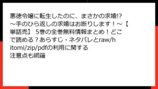 女性マンガ 悪徳令嬢に転生したのに、まさかの求婚!?~手のひら返しの求婚はお断りします!~【単話売】 5巻の全巻無料情報まとめ!どこで読める?あらすじ・ネタバレとraw/hitomi/zip/pdfの利用に関する注意点も網羅 悪徳令嬢に転生したのに、まさかの求婚!? 5巻の魅力に迫る! 意外な展開が満載のラブコメファンタジー こんにちは、マンガ好きのブロガーです! 今日は、宙出版の人気コミック『悪徳令嬢に転生したのに、まさかの求婚!?~手のひら返しの求婚はお断り... 2025.09.23 女性マンガ悪徳令嬢に転生したのに、まさかの求婚!?~手のひら返しの求婚はお断りします!~【単話売】