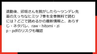 BLマンガ 退勤後、卯坂さんを脱がしたら~ツンデレ先輩のえっちなヒミツ 7巻を全巻無料で読むには?どこで読めるかの最新情報と、あらすじ・ネタバレ、raw・hitomi・zip・pdfのリスクも確認