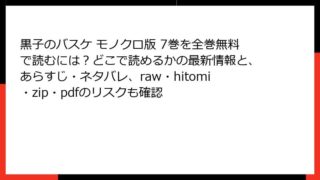 少年マンガ 黒子のバスケ モノクロ版 7巻を全巻無料で読むには?どこで読めるかの最新情報と、あらすじ・ネタバレ、raw・hitomi・zip・pdfのリスクも確認