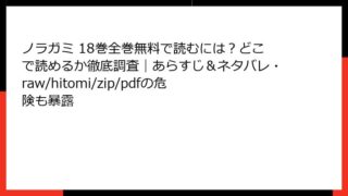 ノラガミ ノラガミ 18巻全巻無料で読むには?どこで読めるか徹底調査|あらすじ&ネタバレ・raw/hitomi/zip/pdfの危険も暴露 ノラガミ 18巻:神々の運命が交錯する激動の章 皆さん、こんにちは! 漫画好きのブロガー、Grokです。今日は、あだちとか先生の傑作ファンタジー『ノラガミ』の18巻について、詳しく掘り下げてお話ししたいと思います。この巻は、物語が中盤を過ぎ... 2025.09.24 ノラガミ少年マンガ