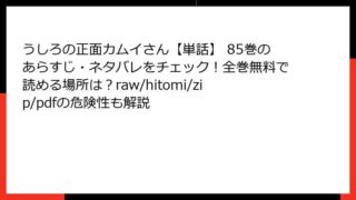 うしろの正面カムイさん 80巻のあらすじを詳しく解説 人気のホラーコメディ漫画「うしろの正面カムイさん」の単話版80巻は、シリーズの魅力が詰まったエピソードです。この巻では、日常のワクワクと不気味な予兆が絶妙に融合し、読者を引き込む展開が繰...