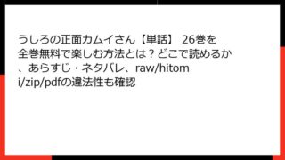 うしろの正面カムイさん【単話】 うしろの正面カムイさん【単話】 80巻を全巻無料で楽しむ方法とは?どこで読めるか、あらすじ・ネタバレ、raw/hitomi/zip/pdfの違法性も確認