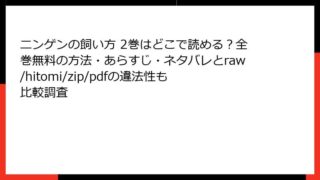 ニンゲンの飼い方 ニンゲンの飼い方 2巻はどこで読める?全巻無料の方法・あらすじ・ネタバレとraw/hitomi/zip/pdfの違法性も比較調査 続!ニンゲンの飼い方 2巻:魔界のペット「ニンゲン」との絆が深まる続編の魅力に迫る 皆さん、こんにちは! ファンタジー要素たっぷりの癒し系コミックが大好きな、ブログ主のマンガオタクです。今日は、ぴえ太先生の人気作『ニンゲンの飼い方』シリーズ... 2025.09.29 ニンゲンの飼い方女性マンガ