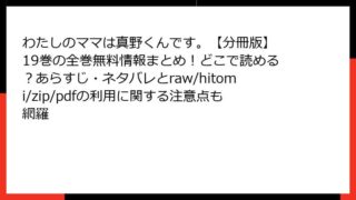 わたしのママは真野くんです。【分冊版】 わたしのママは真野くんです。【分冊版】 19巻の全巻無料情報まとめ!どこで読める?あらすじ・ネタバレとraw/hitomi/zip/pdfの利用に関する注意点も網羅 ニンゲンの飼い方 2巻の魅力的なあらすじを深掘り! 異世界でニンゲンを育てる不思議な日常 みなさん、こんにちは! 今日はファンタジー要素たっぷりのユニークなコミック「ニンゲンの飼い方」第2巻のあらすじを、じっくりとご紹介していきます。この作... 2025.10.02 わたしのママは真野くんです。【分冊版】女性マンガ