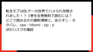 BLマンガ 転生モブはBLゲーの世界でハメられ攻略されました!? 1巻を全巻無料で読むには?どこで読めるかの最新情報と、あらすじ・ネタバレ、raw・hitomi・zip・pdfのリスクも確認 転生モブはBLゲーの世界でハメられ攻略されました!? 1巻:モブキャラの予想外のラブコメディにハマる! こんにちは、BL漫画好きの皆さん! 今日は、KADOKAWAから発売された人気作「転生モブはBLゲーの世界でハメられ攻略されました!? ... 2025.10.03 BLマンガ転生モブはBLゲーの世界でハメられ攻略されました!?