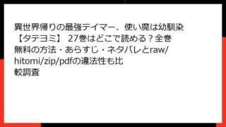 少年マンガ 異世界帰りの最強テイマー、使い魔は幼馴染【タテヨミ】 27巻はどこで読める?全巻無料の方法・あらすじ・ネタバレとraw/hitomi/zip/pdfの違法性も比較調査 異世界帰りの最強テイマー、使い魔は幼馴染【タテヨミ】 27巻 詳細あらすじレビュー こんにちは、ファンタジー漫画好きのブロガーです! 今日ご紹介するのは、人気急上昇中のタテヨミコミック『異世界帰りの最強テイマー、使い魔は幼馴染【タテヨミ】』... 2025.10.04 少年マンガ異世界帰りの最強テイマー、使い魔は幼馴染【タテヨミ】