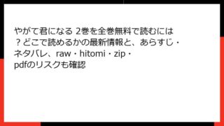 やがて君になる やがて君になる 2巻を全巻無料で読むには?どこで読めるかの最新情報と、あらすじ・ネタバレ、raw・hitomi・zip・pdfのリスクも確認 やがて君になる 2巻:心の距離が少しずつ縮まる、切ない百合の序章 こんにちは、漫画好きの皆さん! 今日は、仲谷鳰先生の傑作百合漫画『やがて君になる』の2巻について、詳しく語っていきたいと思います。1巻で出会った小糸侑と七海燈子の微妙な関係性... 2025.10.04 やがて君になる少年マンガ