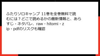 ふたりソロキャンプ ふたりソロキャンプ 11巻を全巻無料で読むには?どこで読めるかの最新情報と、あらすじ・ネタバレ、raw・hitomi・zip・pdfのリスクも確認