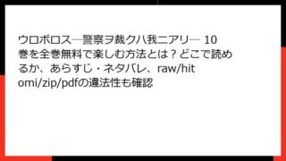 ウロボロス―警察ヲ裁クハ我ニアリ― ウロボロス―警察ヲ裁クハ我ニアリ― 10巻を全巻無料で楽しむ方法とは?どこで読めるか、あらすじ・ネタバレ、raw/hitomi/zip/pdfの違法性も確認