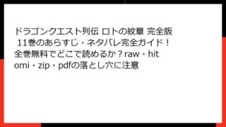 ドラゴンクエスト列伝 ロトの紋章 完全版 ドラゴンクエスト列伝 ロトの紋章 完全版 11巻のあらすじ・ネタバレ完全ガイド!全巻無料でどこで読めるか?raw・hitomi・zip・pdfの落とし穴に注意 ドラゴンクエスト列伝 ロトの紋章 完全版 11巻:因縁の決着とロトの遺産 ドラゴンクエストの伝説を壮大に描き出した名作漫画『ドラゴンクエスト列伝 ロトの紋章』。完全版11巻は、物語の核心に迫る重要な一冊です。この巻では、主人公アルスをはじめ... 2025.10.13 ドラゴンクエスト列伝 ロトの紋章 完全版少年マンガ