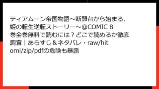 ティアムーン帝国物語~断頭台から始まる、姫の転生逆転ストーリー~@COMIC ティアムーン帝国物語~断頭台から始まる、姫の転生逆転ストーリー~@COMIC 8巻全巻無料で読むには?どこで読めるか徹底調査|あらすじ&ネタバレ・raw/hitomi/zip/pdfの危険も暴露