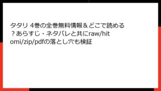 タタリ タタリ 4巻の全巻無料情報&どこで読める?あらすじ・ネタバレと共にraw/hitomi/zip/pdfの落とし穴も検証 『タタリ』4巻:香港決闘編の最高潮! 因縁の激闘が炸裂するダークバトル みなさん、こんにちは! ダークファンタジーとアクションが融合した傑作漫画『タタリ』のファン必見のブログ記事をお届けします。作者の彌さんが描くこの作品は、古代の化け猫が現... 2025.10.13 タタリ少年マンガ