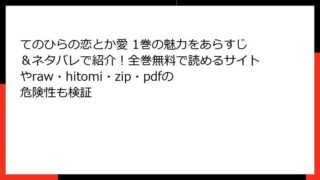 BLマンガ てのひらの恋とか愛 1巻の魅力をあらすじ&ネタバレで紹介!全巻無料で読めるサイトやraw・hitomi・zip・pdfの危険性も検証 『てのひらの恋とか愛』1巻:日常のささやかな出会いが紡ぐ、心揺さぶるラブストーリー こんにちは、漫画好きの皆さん! 今日は、BLジャンルで注目を集めている波真田かもめ先生の最新作『てのひらの恋とか愛』1巻のあらすじを、たっぷり詳しくお届けし... 2025.10.13 BLマンガてのひらの恋とか愛