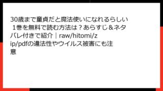 30歳まで童貞だと魔法使いになれるらしい 30歳まで童貞だと魔法使いになれるらしい 1巻を無料で読む方法は?あらすじ&ネタバレ付きで紹介|raw/hitomi/zip/pdfの違法性やウイルス被害にも注意