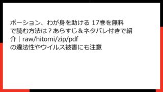 ポーション、わが身を助ける ポーション、わが身を助ける 17巻を無料で読む方法は?あらすじ&ネタバレ付きで紹介|raw/hitomi/zip/pdfの違法性やウイルス被害にも注意