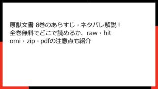 原獣文書 原獣文書 8巻のあらすじ・ネタバレ解説!全巻無料でどこで読めるか、raw・hitomi・zip・pdfの注意点も紹介 遥かな未来の冒険が佳境へ!『原獣文書』8巻の魅力に迫る 皆さん、こんにちは! 漫画好きのブロガー、未来冒険探検家です。今日は、なるしまゆり先生の傑作SFファンタジー『原獣文書』の第8巻について、詳しくあらすじを振り返りながら語っていきたいと... 2025.11.08 原獣文書少女マンガ