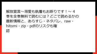 少女マンガ 解放宣言~溺愛も執着もお断りです!~ 4巻を全巻無料で読むには?どこで読めるかの最新情報と、あらすじ・ネタバレ、raw・hitomi・zip・pdfのリスクも確認 解放宣言~溺愛も執着もお断りです!~ 4巻:光と影の狭間で輝く覚醒の物語 みなさん、こんにちは! ファンタジーロマンス大好きブロガーのミナコです。今日は、注目のコミカライズ作品『解放宣言~溺愛も執着もお断りです!~』の4巻について、たっぷり... 2025.11.08 少女マンガ解放宣言~溺愛も執着もお断りです!~
