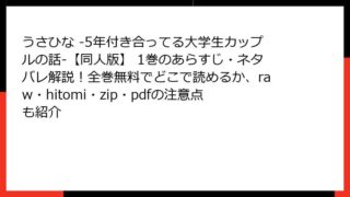 うさひな -5年付き合ってる大学生カップルの話-【同人版】 うさひな -5年付き合ってる大学生カップルの話-【同人版】 1巻のあらすじ・ネタバレ解説!全巻無料でどこで読めるか、raw・hitomi・zip・pdfの注意点も紹介