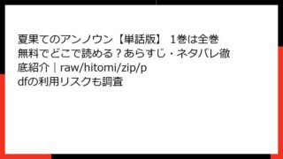 BLマンガ 夏果てのアンノウン【単話版】 1巻は全巻無料でどこで読める?あらすじ・ネタバレ徹底紹介|raw/hitomi/zip/pdfの利用リスクも調査 夏果てのアンノウン【単話版】1巻の魅力に迫る:夏の終わりの切ない恋物語 夏の終わり、蝉の声が遠ざかり、秋風が忍び寄る季節。高校生たちの青春は、いつも少し切なく、少し儚い。そんな中、鈴丸みんた先生の最新作『夏果てのアンノウン【単話版】1巻』が... 2025.11.11 BLマンガ夏果てのアンノウン【単話版】