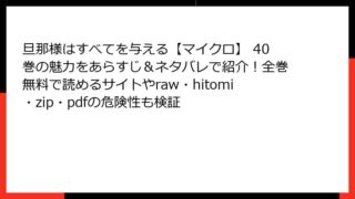 少女マンガ 旦那様はすべてを与える【マイクロ】 40巻の魅力をあらすじ&ネタバレで紹介!全巻無料で読めるサイトやraw・hitomi・zip・pdfの危険性も検証