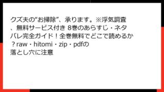 クズ夫の“お掃除”、承ります。※浮気調査、無料サービス付き クズ夫の“お掃除”、承ります。※浮気調査、無料サービス付き 9巻の魅力をあらすじ&ネタバレで紹介!全巻無料で読めるサイトやraw・hitomi・zip・pdfの危険性も検証