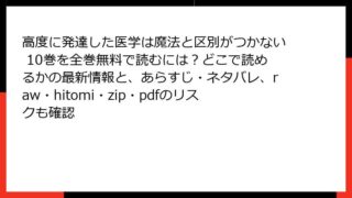 青年マンガ 高度に発達した医学は魔法と区別がつかない 3巻はraw/hitomi/zip/pdfで読める?全巻無料でどこで読めるか、あらすじ&ネタバレも最新情報チェック