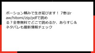 ポーション頼みで生き延びます! ポーション頼みで生き延びます! 7巻はraw/hitomi/zip/pdfで読める?全巻無料でどこで読めるか、あらすじ&ネタバレも最新情報チェック ポーション頼みで生き延びます! 7巻 徹底レビュー:カオルの異世界サバイバルがさらに加速! こんにちは、ファンタジー漫画好きのブロガーです! 今日は、FUNA原作の人気異世界転生作品『ポーション頼みで生き延びます!』のコミカライズ版7巻につ... 2025.11.12 ポーション頼みで生き延びます!少年マンガ