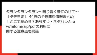 タランタランタラン~鳴り響く音にのせて~【タテヨミ】 タランタランタラン~鳴り響く音にのせて~【タテヨミ】 44巻の全巻無料情報まとめ!どこで読める?あらすじ・ネタバレとraw/hitomi/zip/pdfの利用に関する注意点も網羅