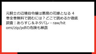 元騎士の辺境伯令嬢は悪魔の花嫁となる 元騎士の辺境伯令嬢は悪魔の花嫁となる 4巻全巻無料で読むには?どこで読めるか徹底調査|あらすじ&ネタバレ・raw/hitomi/zip/pdfの危険も暴露 元騎士の辺境伯令嬢は悪魔の花嫁となる 4巻:運命の悪魔との再会と深まる絆 皆さん、こんにちは! ファンタジー漫画大好きブログの管理人です。今回は、雪めい先生原作、琴乃葉先生作画の人気コミカライズ作品『元騎士の辺境伯令嬢は悪魔の花嫁となる』の... 2025.11.14 元騎士の辺境伯令嬢は悪魔の花嫁となる少女マンガ