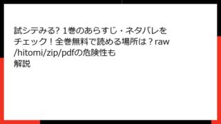 BLマンガ 試シテみる? 1巻のあらすじ・ネタバレをチェック!全巻無料で読める場所は?raw/hitomi/zip/pdfの危険性も解説 試シテみる? 1巻 - 心揺さぶる青春ラブコメの幕開け 「試シテみる?」は、日常のちょっとした好奇心から始まる甘酸っぱい恋模様を描いた人気コミックシリーズの第1巻。作者の繊細な心理描写とテンポ良いギャグが融合し、読者を一気に引き込む作品です... 2025.11.17 BLマンガ試シテみる?