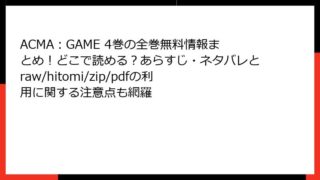 ACMA:GAME ACMA:GAME 4巻の全巻無料情報まとめ!どこで読める?あらすじ・ネタバレとraw/hitomi/zip/pdfの利用に関する注意点も網羅 ACMA:GAME 4巻の魅力に迫る! 心理戦の極限が描かれる一冊 こんにちは、漫画好きのブロガーです! 今日スポットライトを当てるのは、メーブ原作・恵広史作画のサスペンスギャンブル漫画『ACMA:GAME』の第4巻。アクマの鍵を巡る命がけ... 2025.11.17 ACMA:GAME少年マンガ