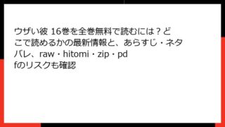 BLマンガ ウザい彼 16巻を全巻無料で読むには?どこで読めるかの最新情報と、あらすじ・ネタバレ、raw・hitomi・zip・pdfのリスクも確認 ウザい彼(友達の妹が俺にだけウザい)16巻:非効率な青春が加速するラブコメの頂点 こんにちは、漫画好きのブロガーです! 今日は、スクウェア・エニックスから刊行されている人気青春ラブコメ『友達の妹が俺にだけウザい』(通称:いもウザ)のコミック... 2025.11.17 BLマンガウザい彼