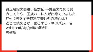 少女マンガ 貧乏令嬢の勘違い聖女伝 ~お金のために努力してたら、王族ハーレムが出来ていました!?~ 2巻を全巻無料で楽しむ方法とは?どこで読めるか、あらすじ・ネタバレ、raw/hitomi/zip/pdfの違法性も確認 貧乏令嬢の勘違い聖女伝 ~お金のために努力してたら、王族ハーレムが出来ていました!?~ 2巻 詳細あらすじレビュー こんにちは、マンガ好きのブロガーです! 今日も人気の異世界ファンタジーコミックから、貧乏令嬢の勘違い聖女伝の2巻をピックアッ... 2025.11.17 少女マンガ貧乏令嬢の勘違い聖女伝 ~お金のために努力してたら、王族ハーレムが出来ていました!?~