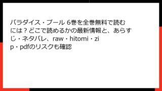 パラダイス・プール パラダイス・プール 6巻を全巻無料で読むには?どこで読めるかの最新情報と、あらすじ・ネタバレ、raw・hitomi・zip・pdfのリスクも確認