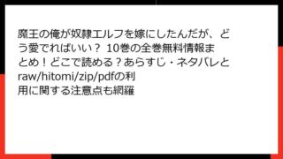 青年マンガ 魔王の俺が奴隷エルフを嫁にしたんだが、どう愛でればいい? 10巻の全巻無料情報まとめ!どこで読める?あらすじ・ネタバレとraw/hitomi/zip/pdfの利用に関する注意点も網羅 魔王の俺が奴隷エルフを嫁にしたんだが、どう愛でればいい? 10巻 詳細あらすじレビュー こんにちは、ファンタジーラブコメ大好き読者の皆さん! 今日のブログ記事では、人気ライトノベル原作のコミカライズ版から、待望の『魔王の俺が奴隷エルフを嫁に... 2025.11.17 青年マンガ魔王の俺が奴隷エルフを嫁にしたんだが、どう愛でればいい?