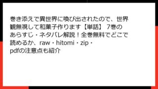 少女マンガ 巻き添えで異世界に喚び出されたので、世界観無視して和菓子作ります【単話】 7巻のあらすじ・ネタバレ解説!全巻無料でどこで読めるか、raw・hitomi・zip・pdfの注意点も紹介 巻き添えで異世界に喚び出されたので、世界観無視して和菓子作ります【単話】 7巻 あらすじレビュー 異世界転移ファンタジーの新定番として人気を博す本作。和菓子職人を目指す主人公・小百合が、巻き添えで召喚された異世界で夢を追いながら、意外な力で... 2025.11.18 少女マンガ巻き添えで異世界に喚び出されたので、世界観無視して和菓子作ります【単話】