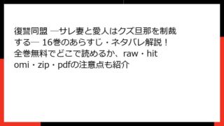 女性マンガ 復讐同盟 ―サレ妻と愛人はクズ旦那を制裁する― 8巻はraw/hitomi/zip/pdfで読める?全巻無料でどこで読めるか、あらすじ&ネタバレも最新情報チェック