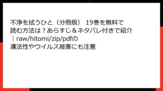 不浄を拭うひと(分冊版)13巻の魅力に迫る:特殊清掃の現場が描く人間ドラマ こんにちは、漫画好きのブロガーです。今日は、沖田×華先生原作、天池康夫先生原案の感動作『不浄を拭うひと(分冊版)』の13巻について、詳しく掘り下げてお話ししたいと思...