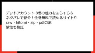デッドアカウント デッドアカウント 8巻の魅力をあらすじ&ネタバレで紹介!全巻無料で読めるサイトやraw・hitomi・zip・pdfの危険性も検証 『デッドアカウント』8巻の魅力に迫る:現代の幽霊ホラーアクションの深淵 こんにちは、漫画好きの皆さん! 今回は、渡辺静先生の傑作ホラーアクション『デッドアカウント』の第8巻について、詳しく掘り下げてお話ししたいと思います。この作品は、スマホ... 2025.11.21 デッドアカウント少年マンガ