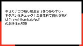 幸せカナコの殺し屋生活 幸せカナコの殺し屋生活 2巻のあらすじ・ネタバレをチェック!全巻無料で読める場所は?raw/hitomi/zip/pdfの危険性も解説 『幸せカナコの殺し屋生活』2巻:カナコの殺し屋デビューがもたらす波乱の連続! みなさん、こんにちは! 漫画好きのブロガー、コミックハンターです。今日は、若林稔弥先生の傑作4コマ漫画『幸せカナコの殺し屋生活』の2巻について、詳しくあらすじを掘... 2025.11.21 幸せカナコの殺し屋生活青年マンガ