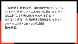 【単話版】期間限定、第四騎士団のキッチンメイド~結婚したくないので就職しました~@COMIC 【単話版】期間限定、第四騎士団のキッチンメイド~結婚したくないので就職しました~@COMIC 17巻の魅力をあらすじ&ネタバレで紹介!全巻無料で読めるサイトやraw・hitomi・zip・pdfの危険性も検証