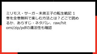 ミリモス・サーガ-末弟王子の転生戦記 ミリモス・サーガ-末弟王子の転生戦記 1巻を全巻無料で楽しむ方法とは?どこで読めるか、あらすじ・ネタバレ、raw/hitomi/zip/pdfの違法性も確認