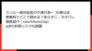 スリル~絶対秘密の不貞行為~ スリル~絶対秘密の不貞行為~ 30巻は全巻無料でどこで読める?あらすじ・ネタバレ徹底紹介|raw/hitomi/zip/pdfの利用リスクも調査 スリル~絶対秘密の不貞行為~ 30巻 詳細あらすじレビュー:予備校の噂が紡ぐ禁断のスリル こんにちは、漫画好きのブロガーです。今回は、redcity作画・赤ちゃん原作の人気シリーズ「スリル~絶対秘密の不貞行為~」の30巻について、詳しくあら... 2025.11.24 スリル~絶対秘密の不貞行為~青年マンガ