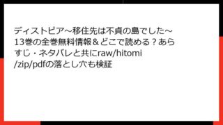 ディストピア~移住先は不貞の島でした~ ディストピア~移住先は不貞の島でした~ 13巻の全巻無料情報&どこで読める?あらすじ・ネタバレと共にraw/hitomi/zip/pdfの落とし穴も検証 ディストピア~移住先は不貞の島でした~ 13巻 詳細あらすじ 『ディストピア~移住先は不貞の島でした~』は、杉野アキユキによるエログロ要素満載のディストピア漫画。根度羅島(ねどらじま)と呼ばれる孤立した島を舞台に、主人公・颯太一家が移住した... 2025.11.24 ディストピア~移住先は不貞の島でした~青年マンガ