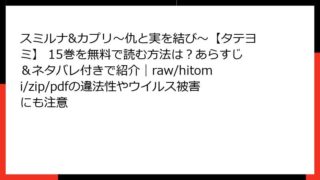 BLマンガ スミルナ&カプリ~仇と実を結び~【タテヨミ】 15巻を無料で読む方法は?あらすじ&ネタバレ付きで紹介|raw/hitomi/zip/pdfの違法性やウイルス被害にも注意 スミルナ&カプリ~仇と実を結び~【タテヨミ】 15巻 詳細あらすじレビュー 皆さん、こんにちは! ファンタジーとオメガバースの魅力が融合した人気作『スミルナ&カプリ~仇と実を結び~【タテヨミ】』の15巻が登場しました。この巻では、敵対から生... 2025.11.24 BLマンガスミルナ&カプリ~仇と実を結び~【タテヨミ】