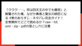 「ククク……。奴は四天王の中でも最弱」と解雇された俺、なぜか勇者と聖女の師匠になる 「ククク……。奴は四天王の中でも最弱」と解雇された俺、なぜか勇者と聖女の師匠になる 4巻のあらすじ・ネタバレ完全ガイド!全巻無料でどこで読めるか?raw・hitomi・zip・pdfの落とし穴に注意