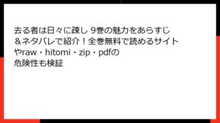 去る者は日々に疎し 去る者は日々に疎し 9巻の魅力をあらすじ&ネタバレで紹介!全巻無料で読めるサイトやraw・hitomi・zip・pdfの危険性も検証 去る者は日々に疎し 9巻 詳細あらすじ 『去る者は日々に疎し』は、葉月京による切なくも深い恋愛ドラマで、生と死の狭間を描いた作品です。9巻では、主人公・弓削命と北野未来の再会がもたらす波乱、そして複雑に絡み合う三角関係がついに決着を迎えます... 2025.11.25 去る者は日々に疎し青年マンガ